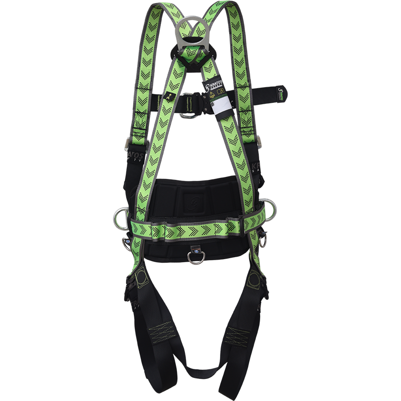 Στοιχεία πρόσδεσης – 1 στερνικός κρίκος D και 1 ραχιαίος κρίκος D για συγκράτηση πτώσης, 2 πλευρικοί κρίκοι D για εργασιακή τοποθέτηση.