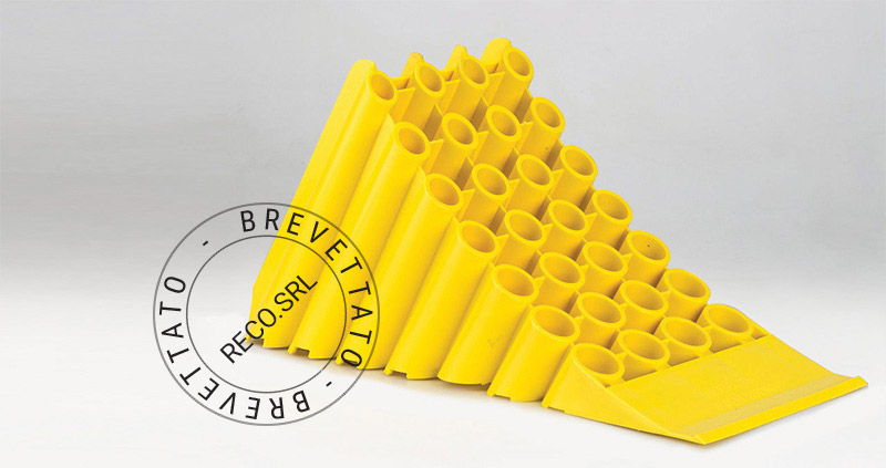 Το κορυφαίο προϊόν της RECO, οι τάκοι φορτηγού, πιστοποιημένοι από τον TÜV και σύμφωνοι με τους κανονισμούς ADR, κατασκευάζονται από HDPE σταθεροποιημένο κατά της υπεριώδους ακτινοβολίας (anti-UV). Πρόκειται για εξαιρετικά ανθεκτικά προϊόντα, σχεδιασμένα μέσα από εκτεταμένες μελέτες μηχανικής, με στόχο να συνδυάζουν τη μέγιστη ελαφρότητα και ευκολία χειρισμού, χαρακτηριστικά που ισχύουν και για τις βάσεις στήριξής τους, προσφέροντας ταυτόχρονα απόλυτη ασφάλεια, όπως απαιτείται από τα διεθνή πρότυπα.